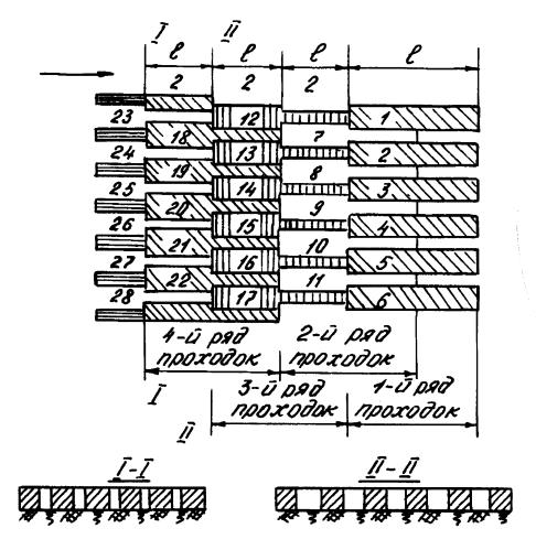 Рис. 2.16. Ребристо-шахматная схема резания грунта скреперами