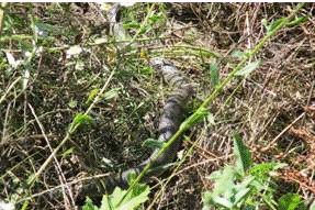 одной особи погибшего ужа обыкновенного. Судя по характеру повреждений,