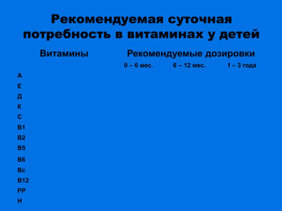 Рекомендуемая суточная потребность в витаминах у детей