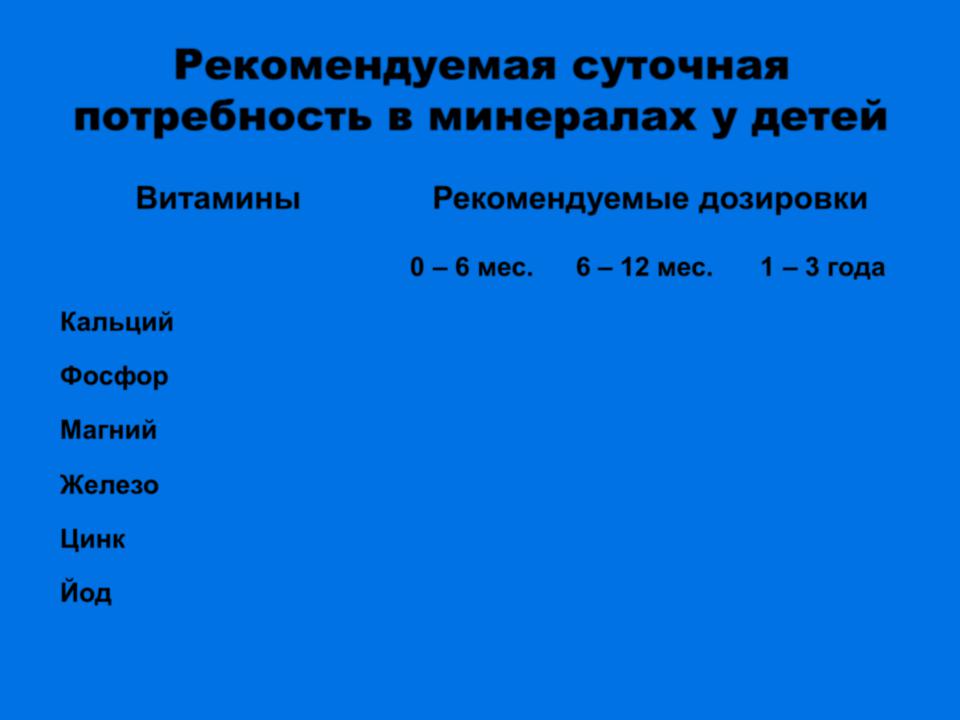 Рекомендуемая суточная потребность в минералах у детей