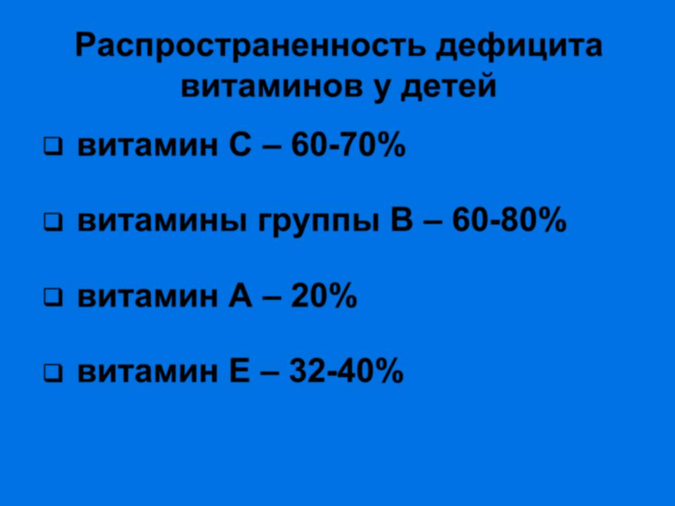 Распространенность дефицита витаминов у детей