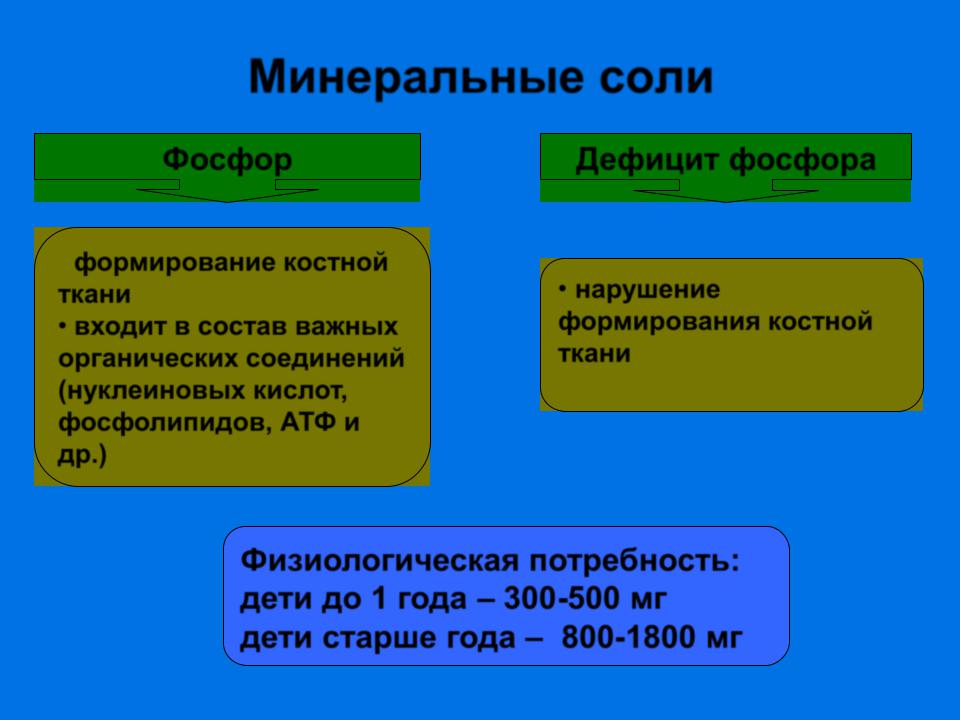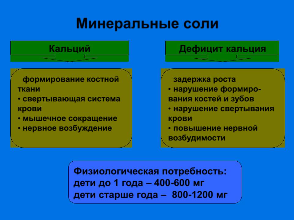 Физиологическая потребность: дети до 1 года – 300-500 мг дети старше года – 800-1800 мг