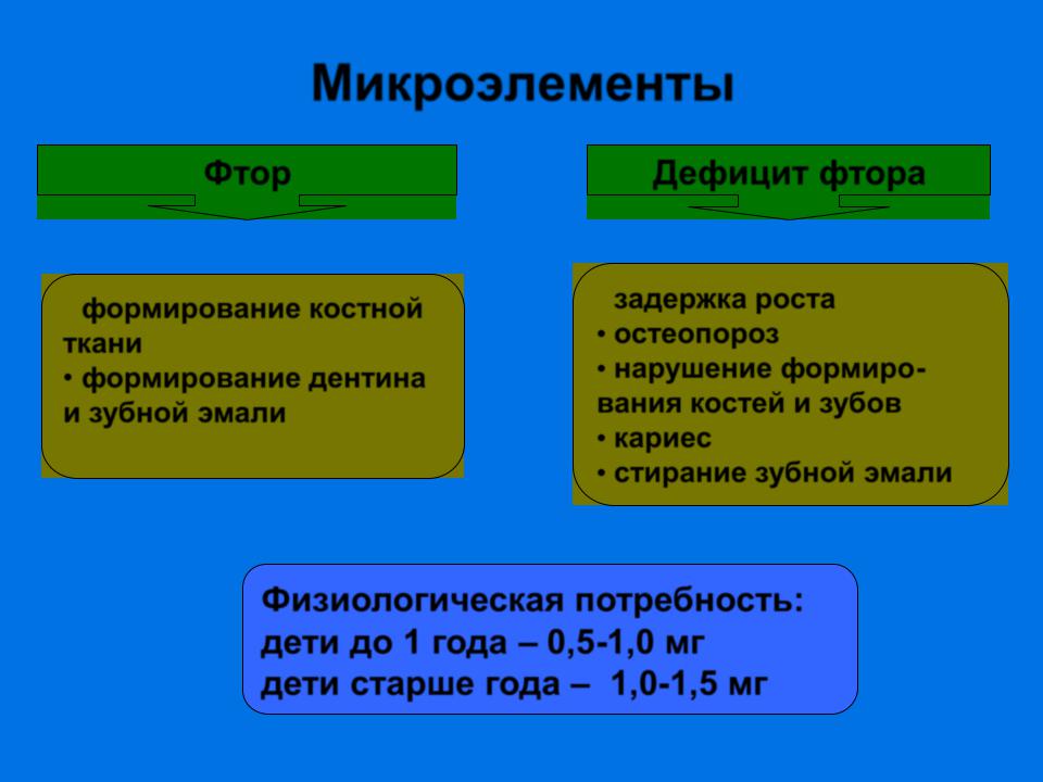 Физиологическая потребность: дети до 1 года – 0,5-1,0 мг дети старше года – 1,0-1,5 мг
