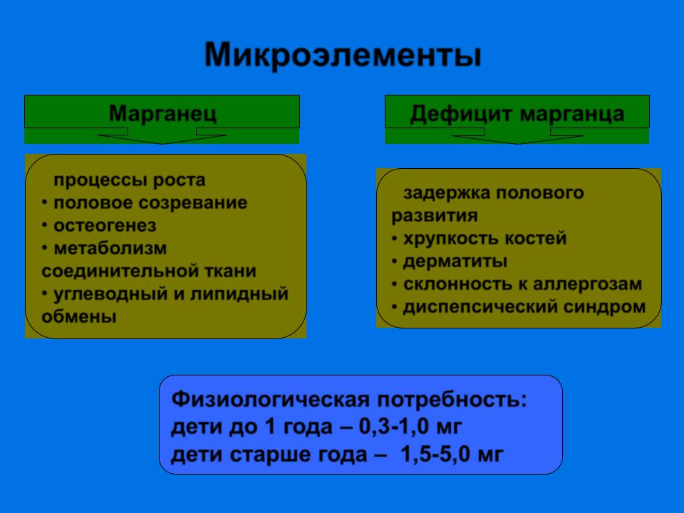 Физиологическая потребность: дети до 1 года – 3-4 мг дети старше года – 5-12 мг