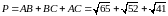 е) Периметр трикутника та площа трикутника: