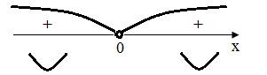 Оскільки у точці функція та її похідні не визначені, графік функції немає перегину.
