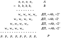 A(a3, a2, a1, a0) i B(b3, b2, b1, b0) – двійкові 4-рирозряднічисла – сомножники;